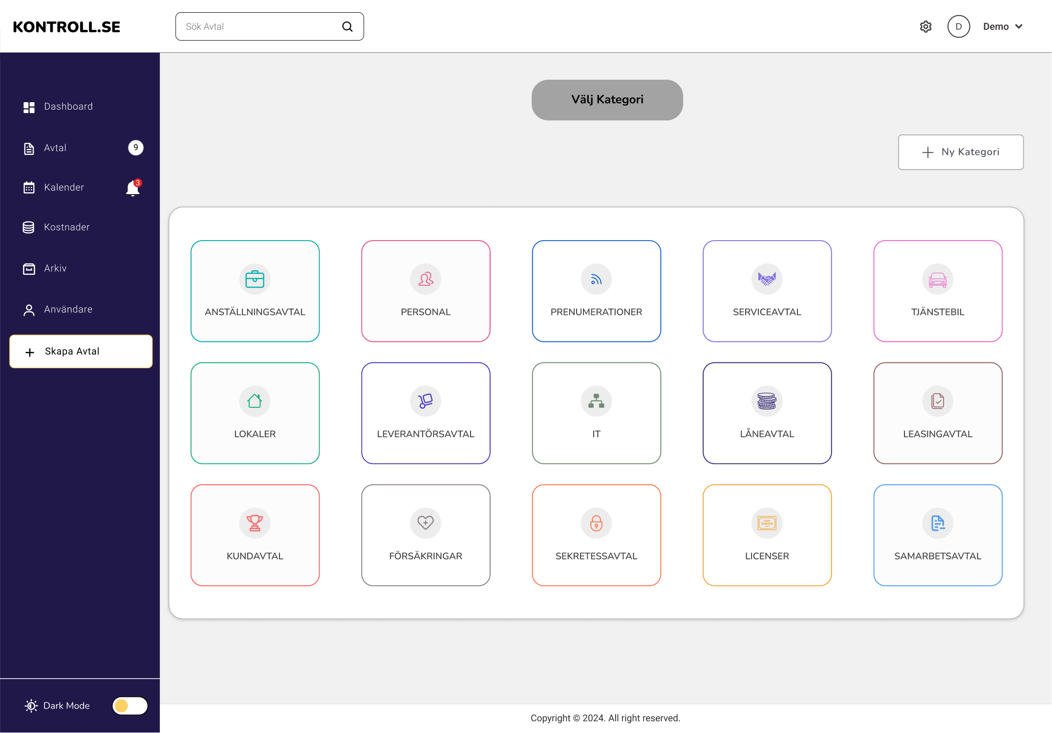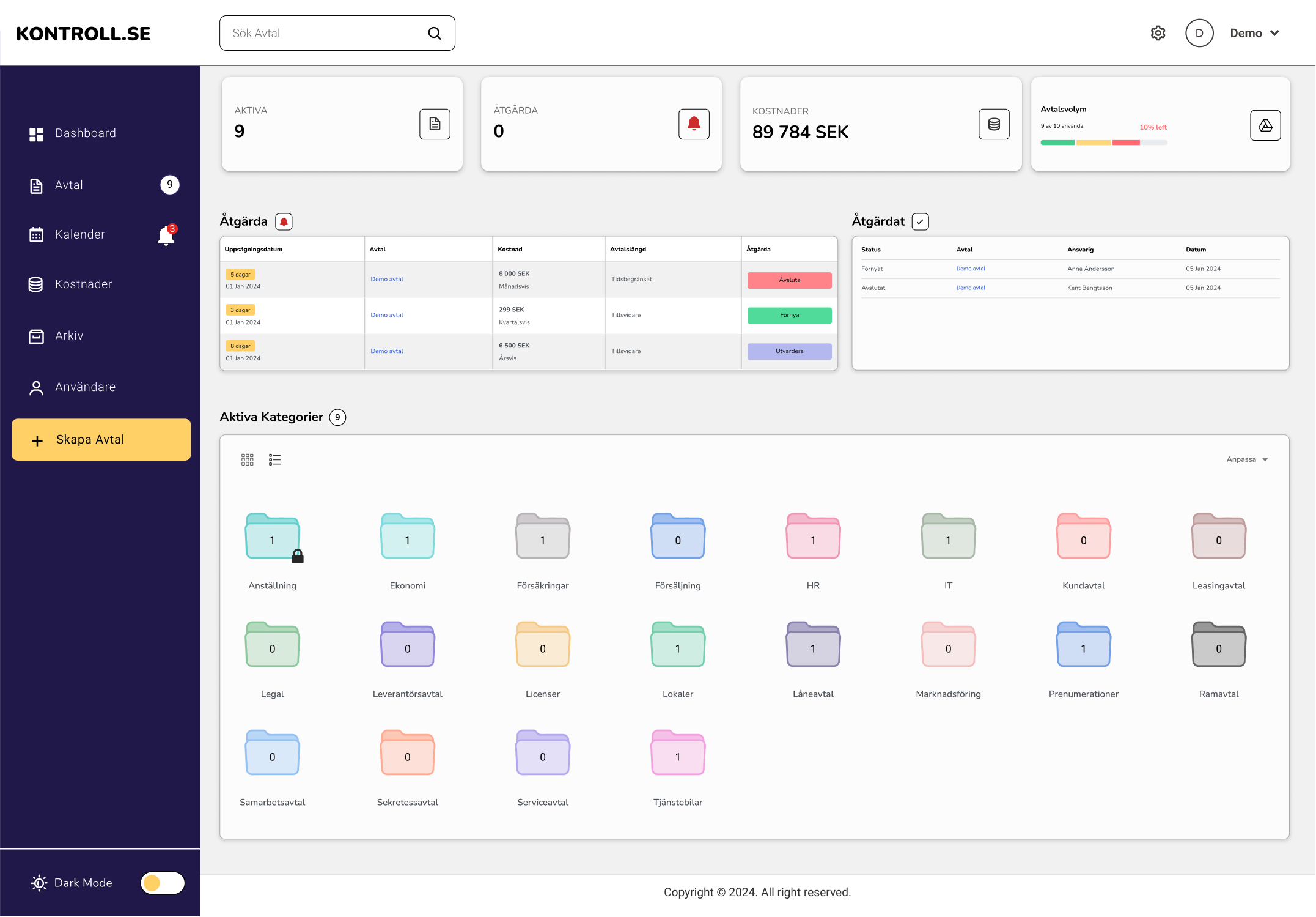 Tydlig dashboard ger dig full kontroll på samtliga avtal.